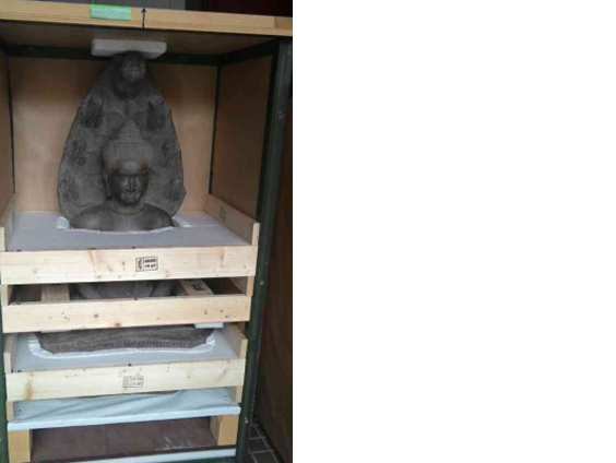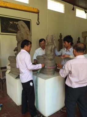 | 工作人员在柬埔寨现场包装文物 |
