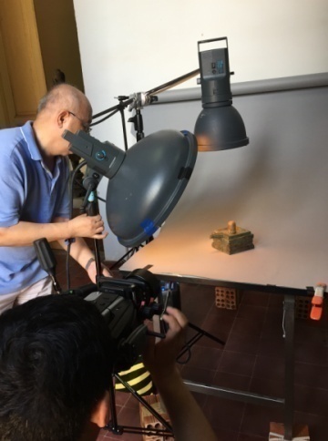 文物摄影师给文物展品拍照 |