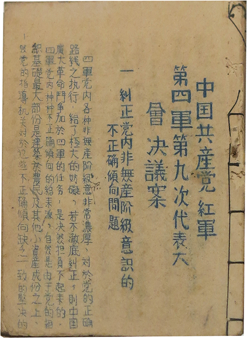 重点展品有红军第四军党代表大会通过的决议,即《中国共产党红军第四军第九次代表大会决议案》,又称《古田会议决议》。会议总结了红军创建以来军队建设的经验,确立了中国共产党领导下的人民军队建设的根本原则,是中国共产党和军队建设的重要纲领性文献。这本1929年的油印本能够保留至今,说明了珍藏者对过去那段岁月的怀念,也印证了习主席所讲的“不忘初心”。《解放》四三·四合刊是另一个亮点,它为抗战一周年、中国共产党成立十七周年而发行的纪念专刊,也是毛泽东著名论述《论持久战》的初刊本。“淮海战役纪念章”、《战役总结汇集》、《西北解放战争史料汇编》等都展现了波澜壮阔解放战争的历史画面。第一届中国人民政治协商会议纪念章、开国大典照片和明信片、《人民日报》1949年10月2日版,都是新中国成立宏伟时刻的历史呈现。彭德怀亲笔题词的《志愿军一日》记述了志愿军在抗美援朝战争的真实经历,《胜利的法宝》记述了志愿军与“联合国军”作战情景,这些都是艰苦卓越革命历史的脉络呈现。